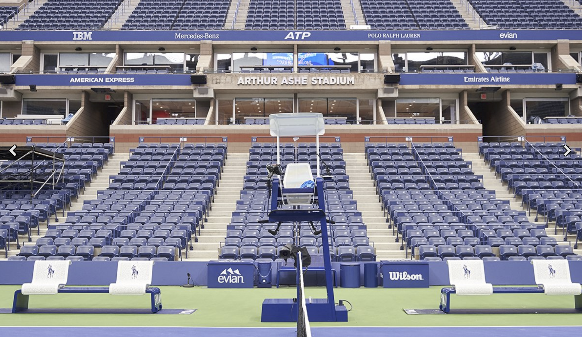 Outfitting four courts on the USTA Billie Jean King National Tennis Center campus in Flushing—including the main Arthur Ashe Stadium—the custom furniture collection includes player benches, umpire stands, line-judge seating, and "cooler corrals."